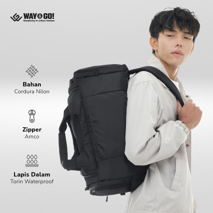 Way&Go Tas Travel & Gym Escape 3 In 1 30 Liter Urban Black Cordura Premium Water Resistant Dengan Slot Troli & Komparte