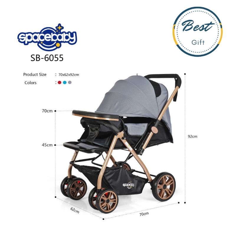 BABY STROLLER SB-6055 REVERSIBLE STIR SPACEBABY size XL, roda BESAR, stir dua arah // SB-6055A // SB-6033 // SB-6033A