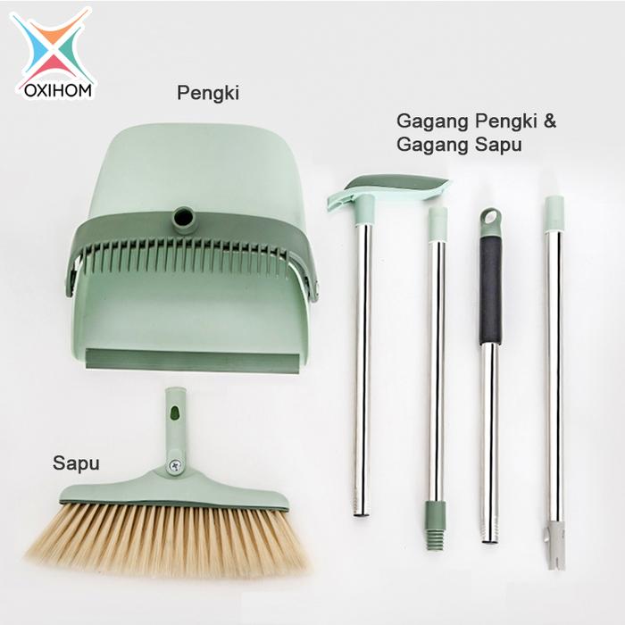 Oxihom Sapu Pengki Set Pengki Sisir Sapu Lipat Alat Pembersih Lantai Buah Bulu - C8006 Hijau, Dikirim Seller