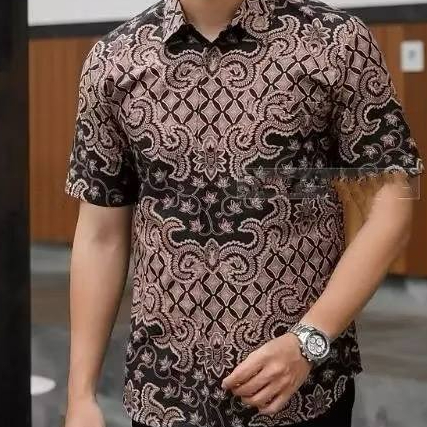 KEMEJA BATIK PRIA LENGAN PENDEK MOTIF TERBARU JALU HITAM