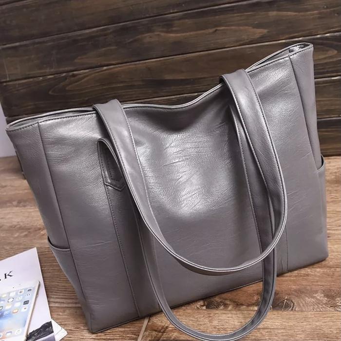 Tote Bag Wanita Kulit Kapasitas Besar Bahan Tebal - Totebag Kulit - Tas Wanita Pengajian Bahu Wanita Kulit Pu Polos - Hi