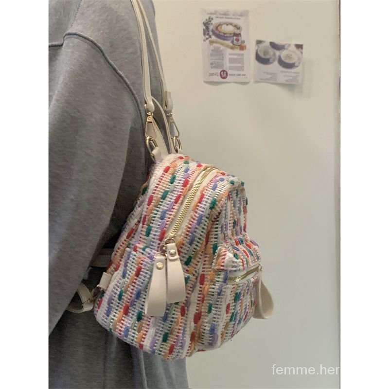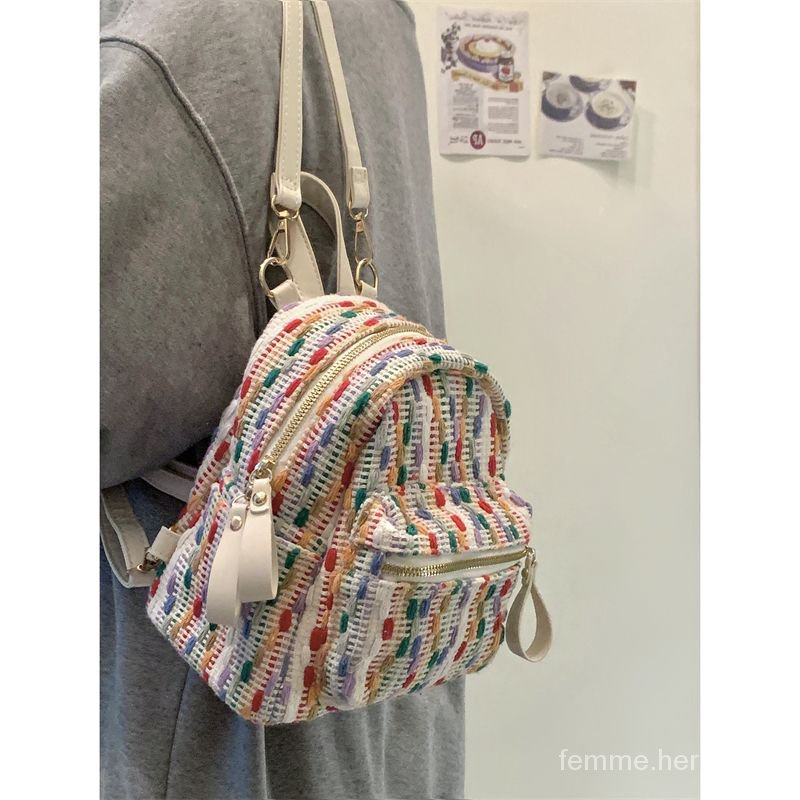 Pelangi rajutan tas bahu Netflix tas bahu senior rasa ceruk perjalanan ransel fashion tas kecil mini
