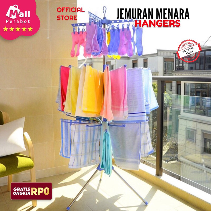 Mall Perabot | Jemuran Menara | Hanger Pengering Baju Lipat Model Tiang 3 Susun | Gantungan Tower Cucian Bayi Jepitan Pakaian