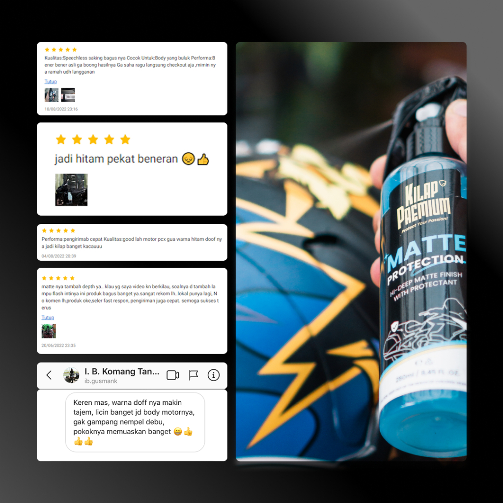 Matte Protection | Kilap Premium - Perawatan Motor Body Doff Helm Doff Mobil Doff, Pelindung Cat Doff, Efek Daun Talas, Perawatan Kendaraan Paint Car dan Sepeda Motor, Perawatan Body Mobil