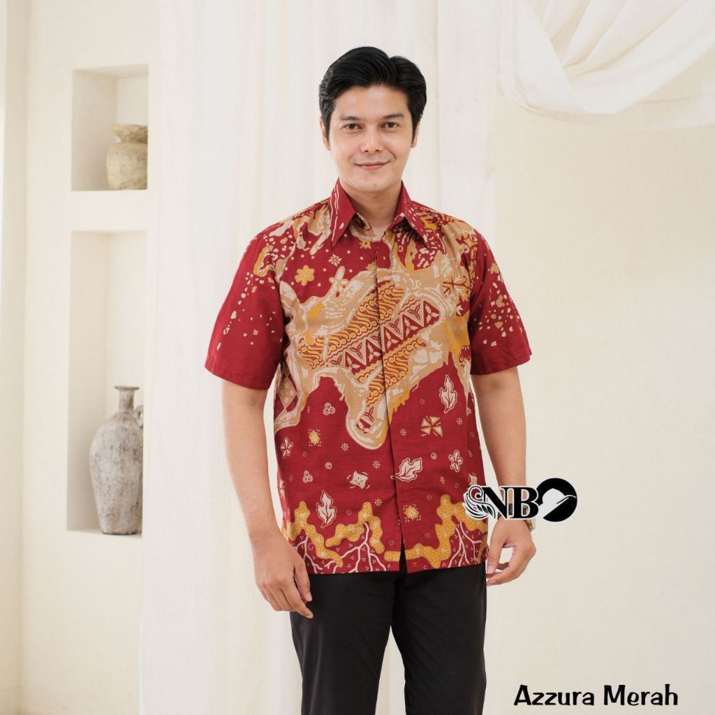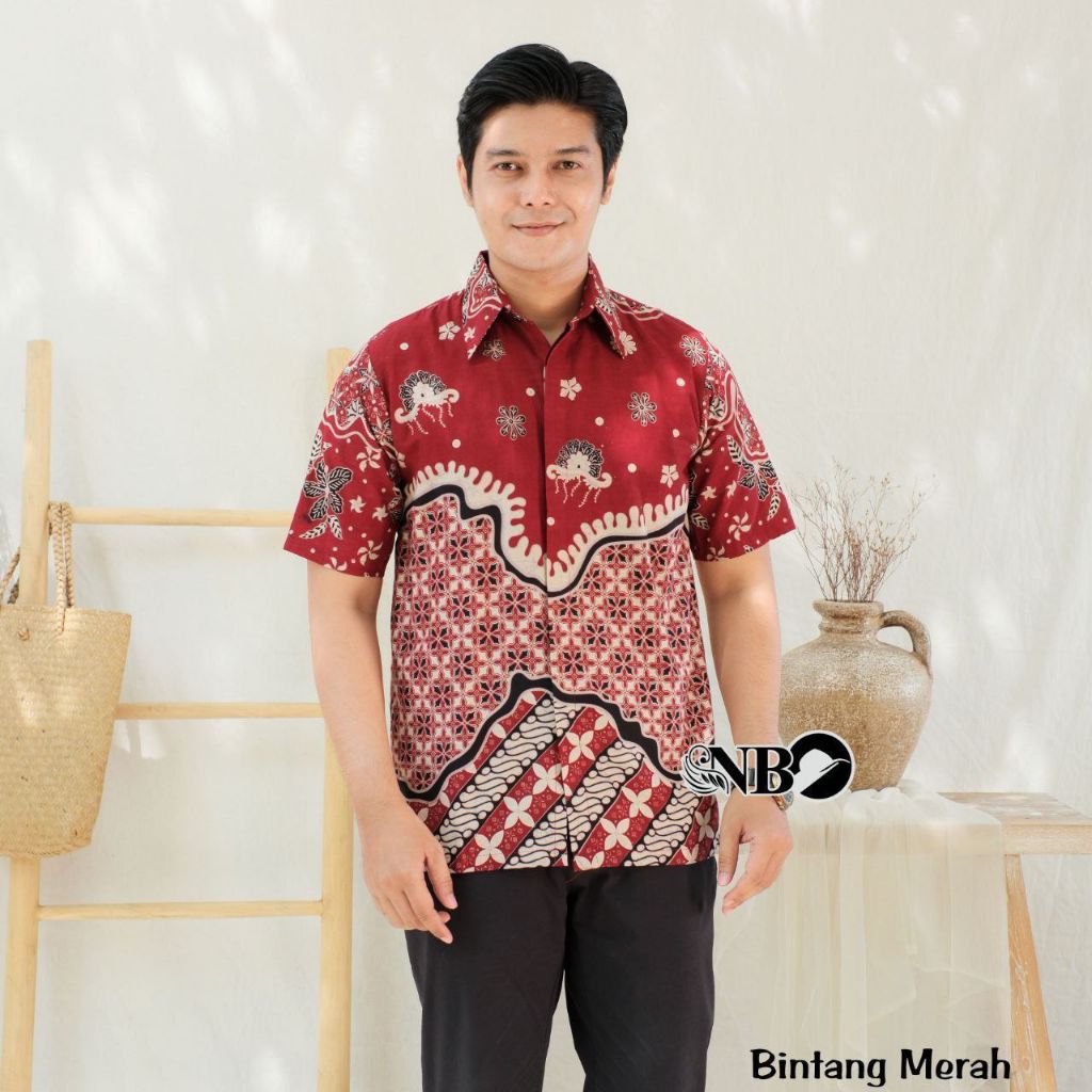 MERAH MARUN Kemeja Batik Pria Lengan Pendek Keren Dewasa Katun M L XL XXL