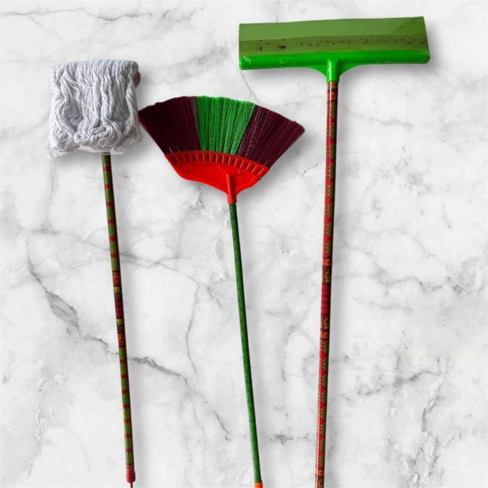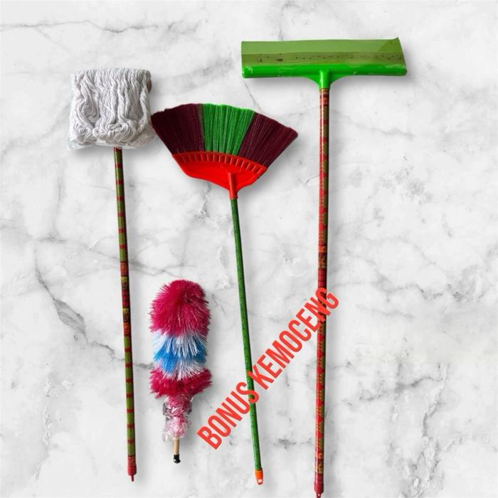 Paket Alat Kebersihan 4 In 1 Lantai Bulu Pel Sapu Senar / Ijuk Pilih Varian Bonus Kemoceng - Bonus Kemoceng, Sapu, Pel