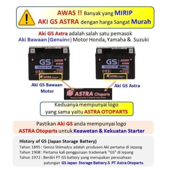 AKI MOTOR GS ASTRA GTZ4V = GTZ5S = YTZ5S = MTZ5S DIJAMIN ASLIORIGINAL