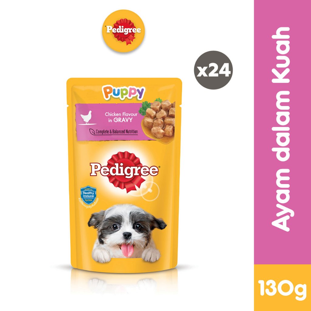 PEDIGREE Makanan Anak Anjing Pouch Rasa Ayam Dalam Kuah 130g (24-Pack)