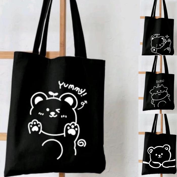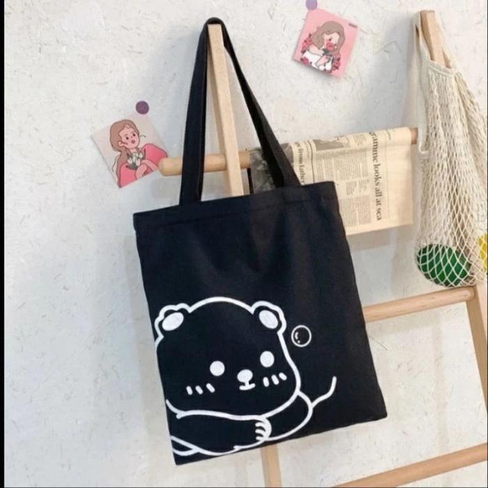 Bos Totebag Wanita Pria Remaja Totebag Korea Style Pakai Resleting - Bear Hitam
