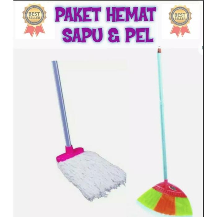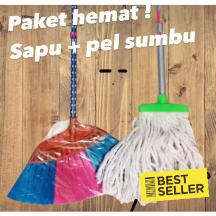 Paket Hemat 2 In 1 Sapu Senar & Pel Lantai Gagang Kayu Kuat Bisa Best Seller Harga Hemat Bahan Pilihan Good Quality
