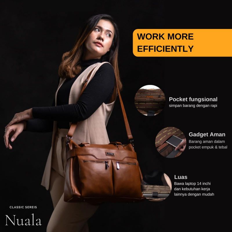 NUALA Bag by Manjua. Tas Kerja, Tas Kuliah, Muat Laptop 14 inch. Tas Laptop, Ukuran Besar.