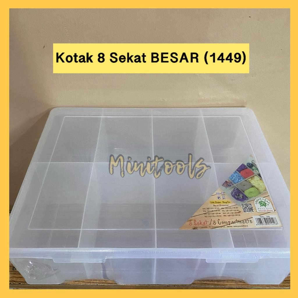 Kotak Plastik 8 Sekat BESAR / Kotak Perkakas 8 Sekat / Wadah Seblak / Green Leaf 1449