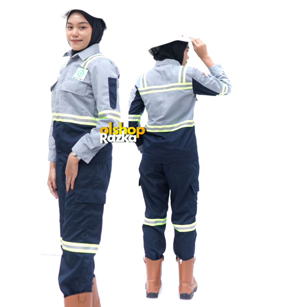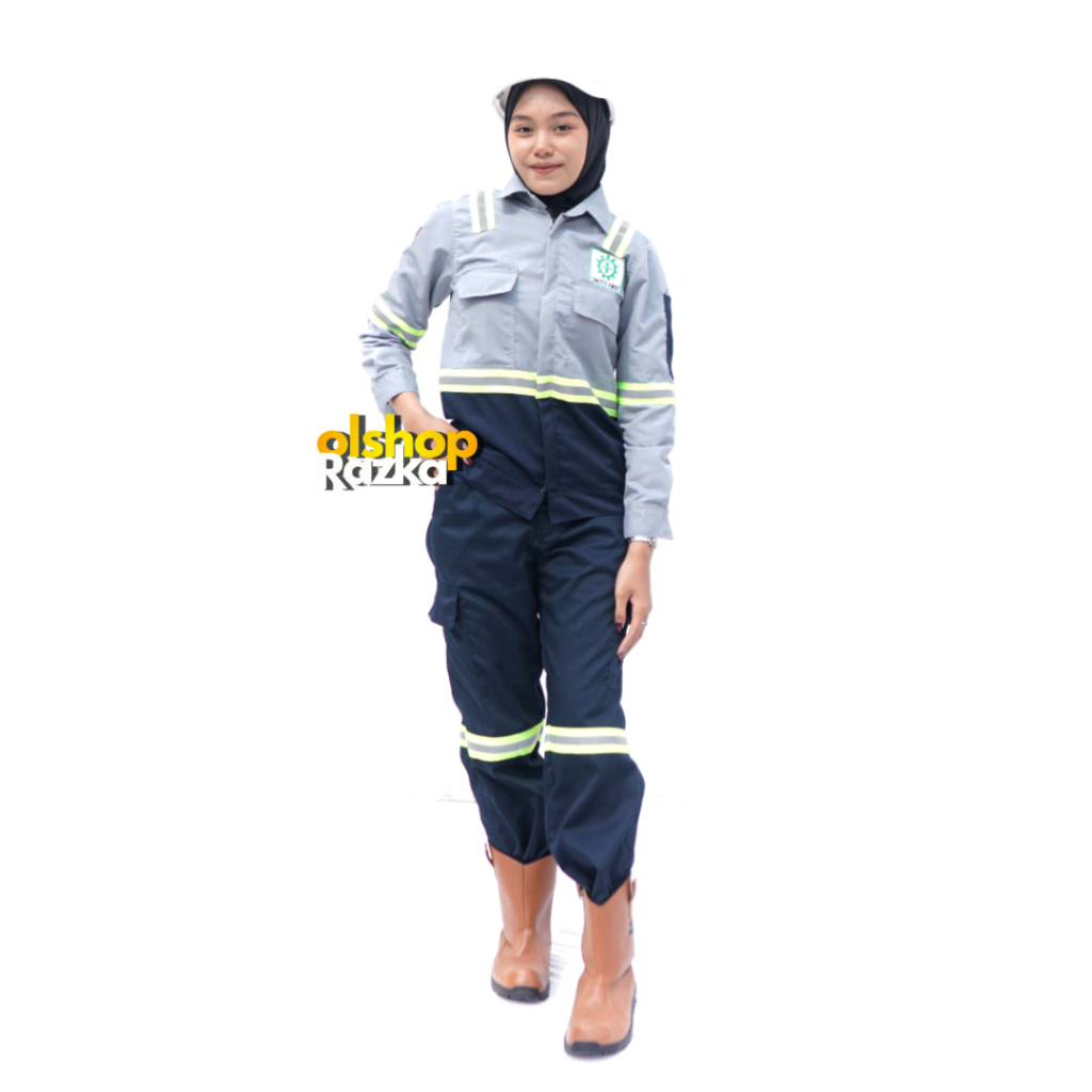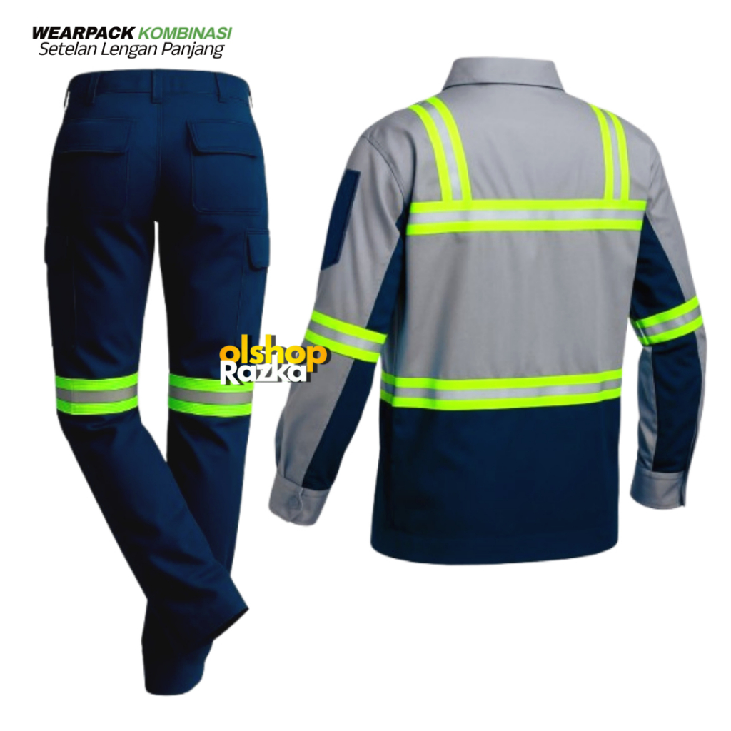Wearpack Setelan Baju dan Celana Panjang Kemeja Seragam Kerja ProyekBahan Americal Drill Abu