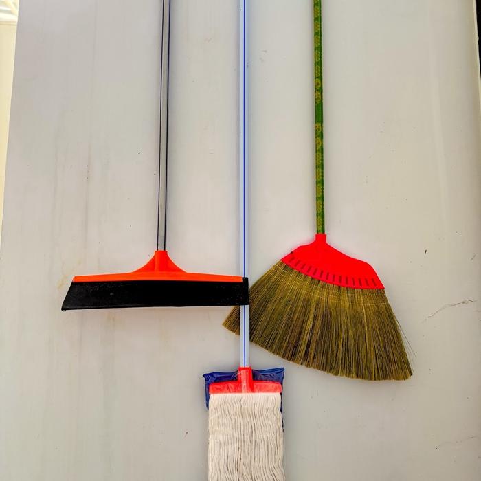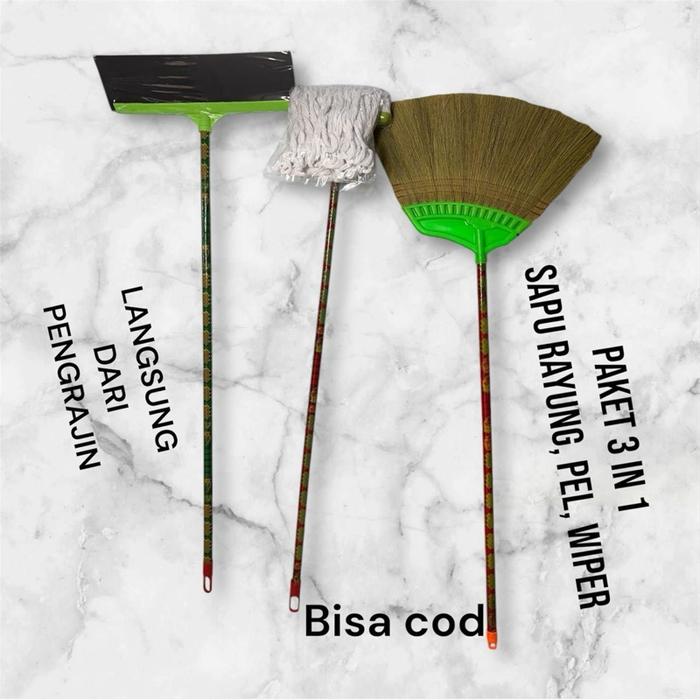 Paket Hemat Alat Kebersihan 3 In 1 Sapu Rayung, Pel Dan Wiper Satu Set - Paket Sapu, Pel, Wiper