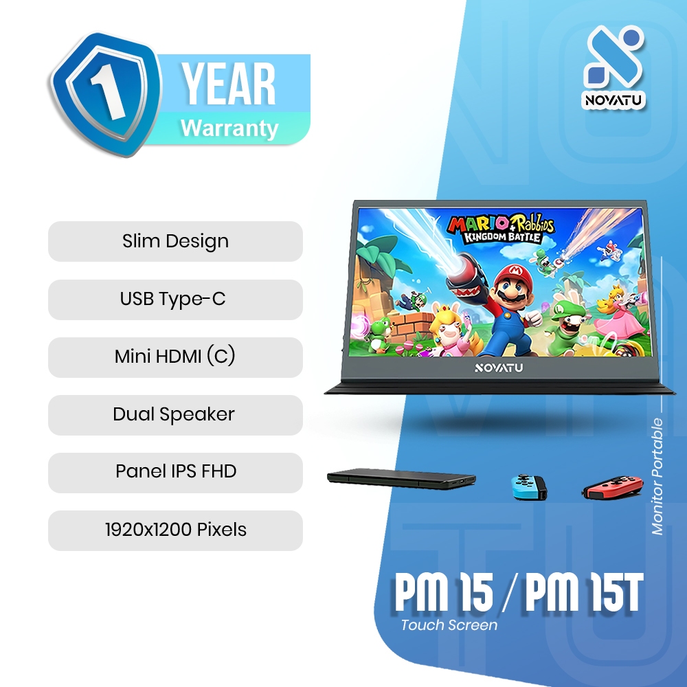 Monitor rtable Touch Screen Novatu Mini HDMI IPS FHD 15.6 Inch 60Hz Dual Audio - Novatu Gaming