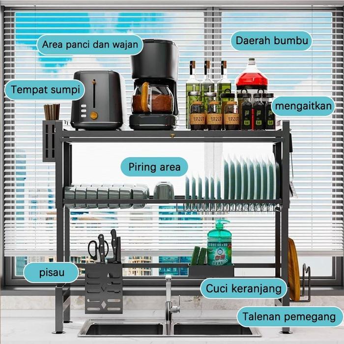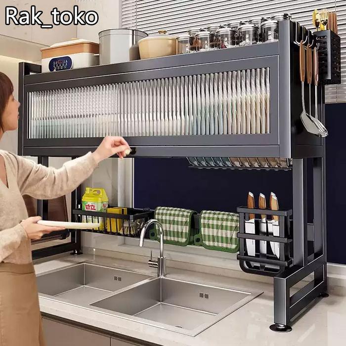 Rak_Toko Rak Piring Dapur Stainless Steel Rak Piring Wastafel Pintu Kabinet Fungsi Rak Penyimpanan Multi-Layer Dengan Le