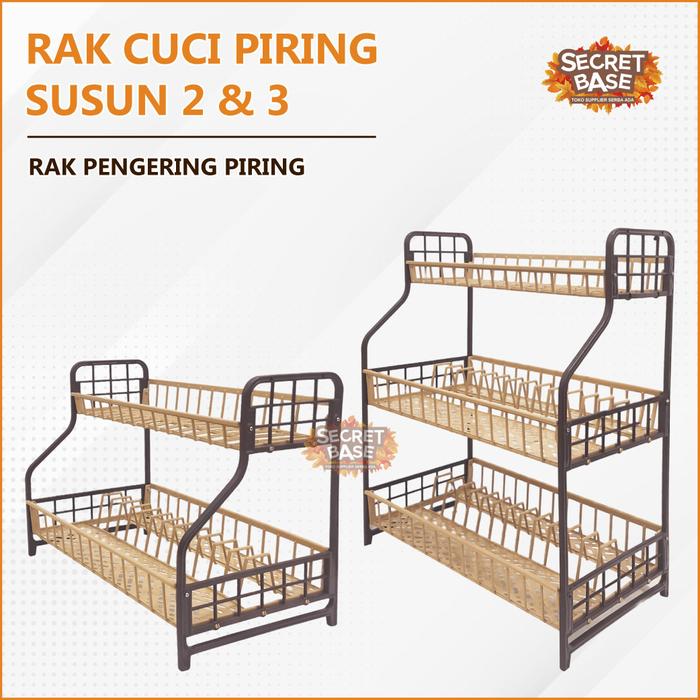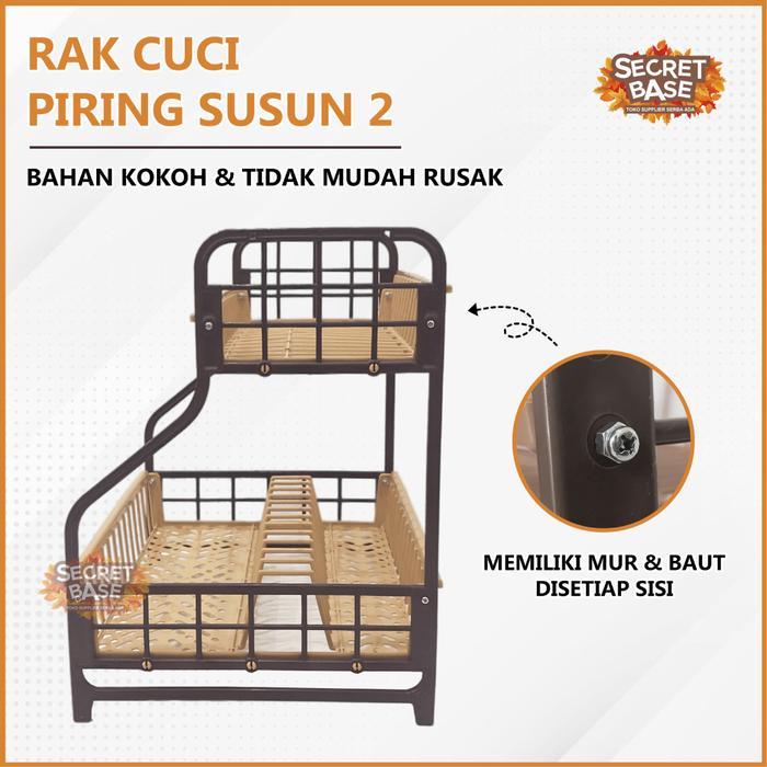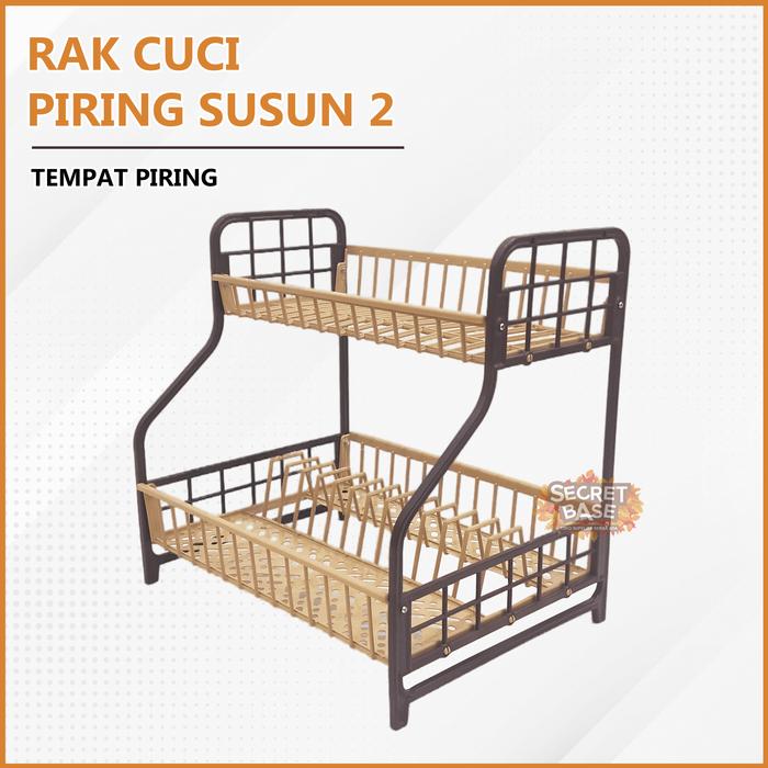 Rak Cuci Piring 2 Susun - Rak Pengering Piring / Dish Dryer Murah Kokoh Plastik - Capucino