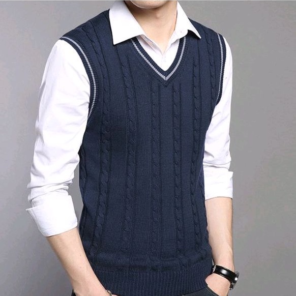 Sn - Vest Cable Woll Premium / Rompi Rajut Pria Tali Kepang