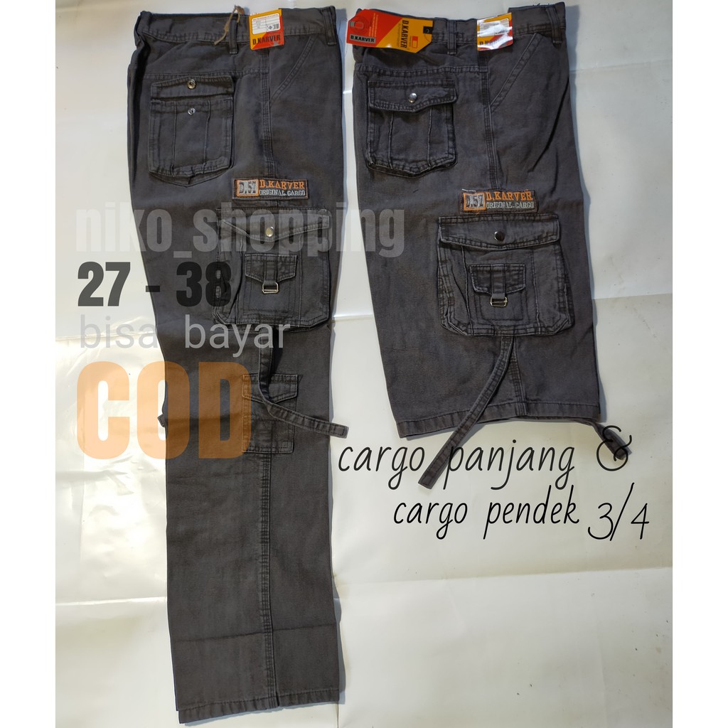 Celana Cargo Pria D'KARVER Denim Panjang Pendek