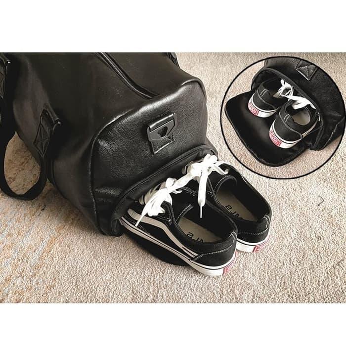 Tas Gym / Tas Travel Kulit Hitam - Ukuran Besar - Pria Wanita Unisex