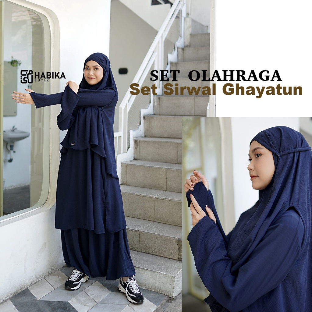 Set Olahraga Ghayatun Rok celana sirwal + Tunik Handshock + Bergo Sporty- One set Airflow
