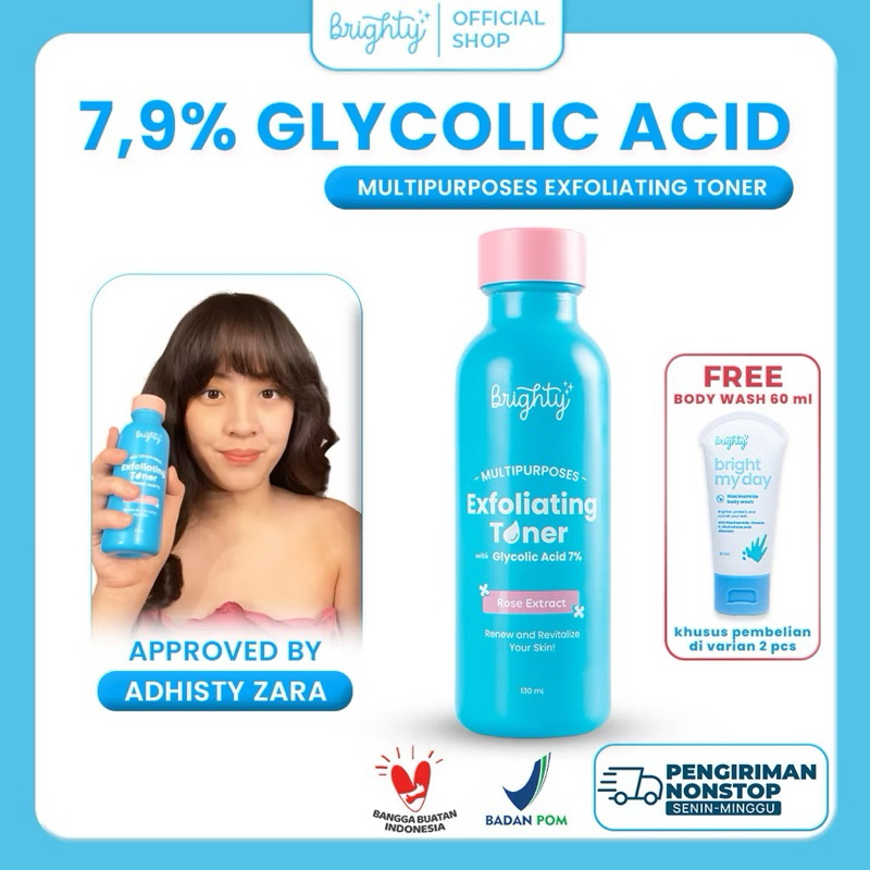 Brighty Multipurpose Exfoliating Toner Pemutih badan pencerah badan pencerah ketiak pemutih leher pencerah leher bo