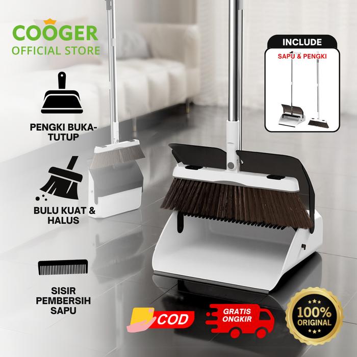 Cooger Sapu Dan Pengki Set Sapu 2In1 Luxury Broom Set Sapu Pembersih Lantai Dilengkapi Pengki Lipat Dengan Pengki