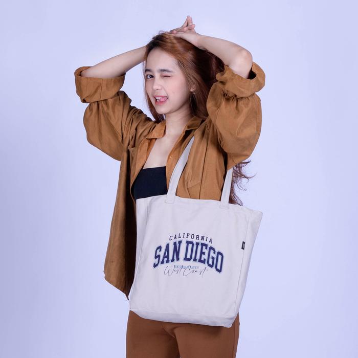 Flade Studios Totebag Kanvas Cream Resleting - Tas Kuliah Pria Wanita - City Series - Berlin