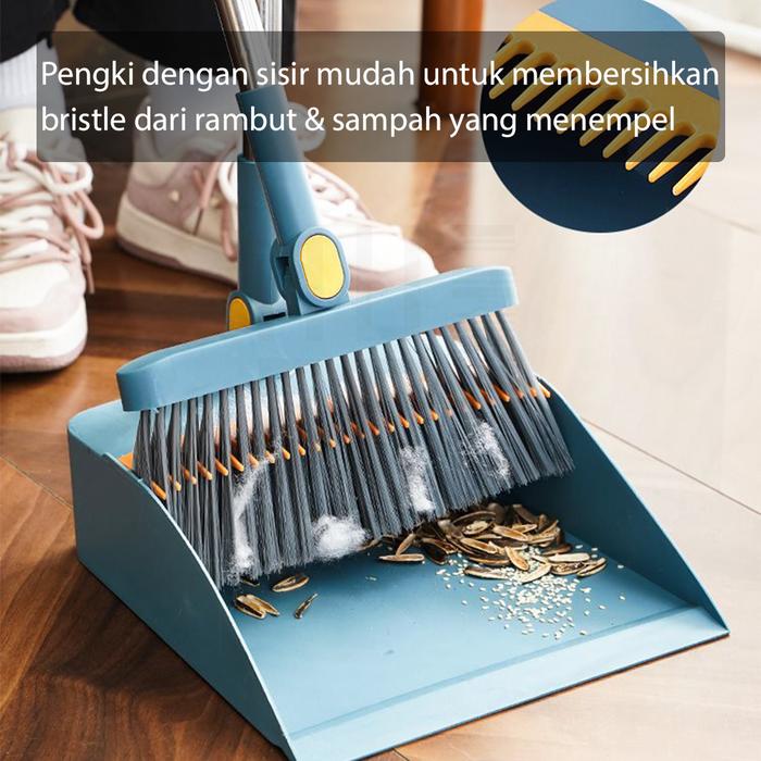 Hugo Set Sapu Pengki Pembersih Broom Set Dustpan Sapu Lipat Praktis - Putih