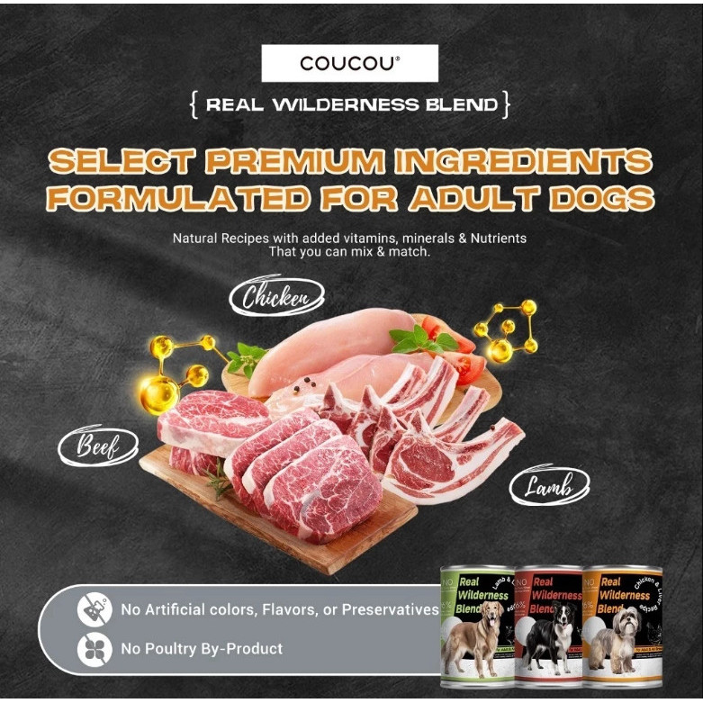 COUCOU Dog Canned Wet Food 400 GR Makanan Anjing Basah Kaleng Beef Lamb Chicken Liver Premium