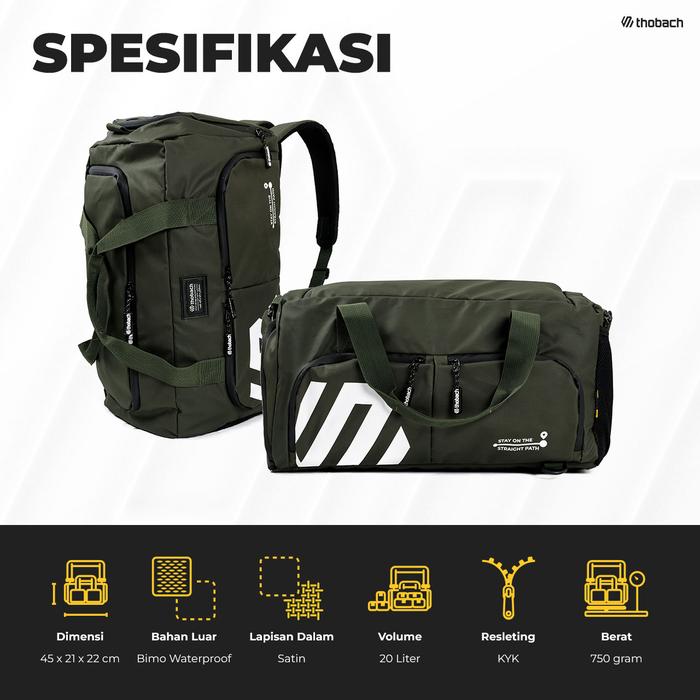 Thobach - Tas Travel Bag Pria Tas Gym Tas Mudik Tas Pulang Kampung Tas Olahraga Escape Outdoor Pria - Army