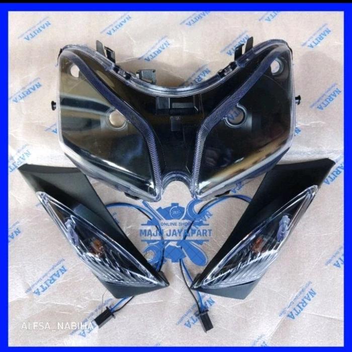 REFLEKTOR LAMPU DEPAN VARIO 110 KARBU BLACK HOUSING KACA MIKA BENING