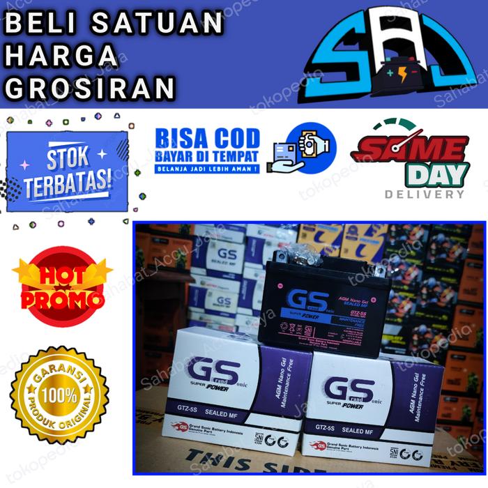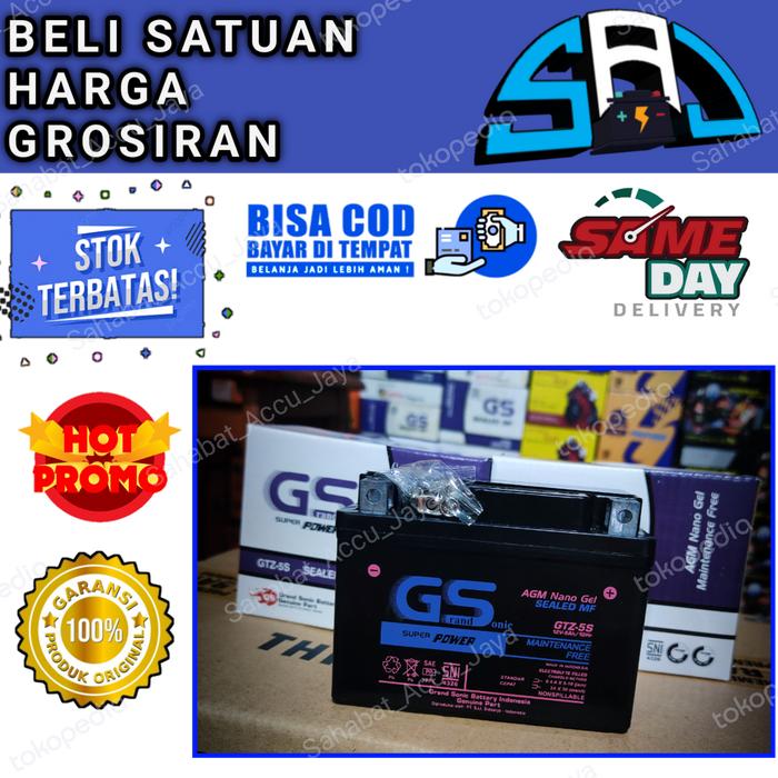 AKI MOTOR KERING GROSIR GS MF GTZ5S ( GARANSI 3 BULAN ) 12V 5AH BEAT