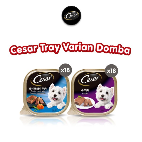 [SPESIAL BUNDLE RASA DOMBA] Cesar Makanan Anjing Basah Premium Tray 100gr - Isi 36 - Rasa Lamb - Tender Lamb
