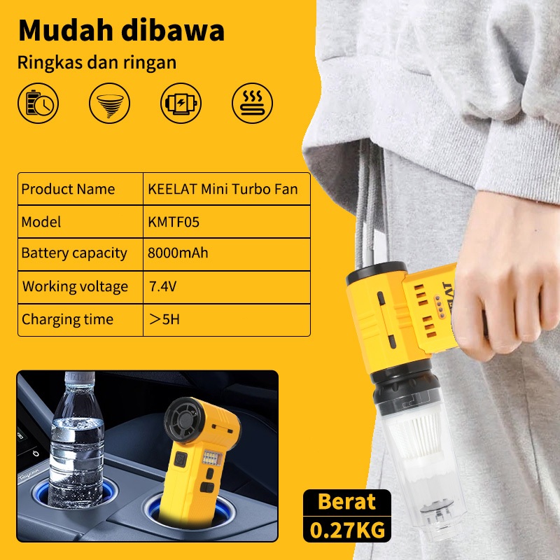 KEELAT-KMTF05 Turbofan Jet Blower industri kipas angin kencang, daya tinggi, blower turbin kuat, baterai lithium, penghi
