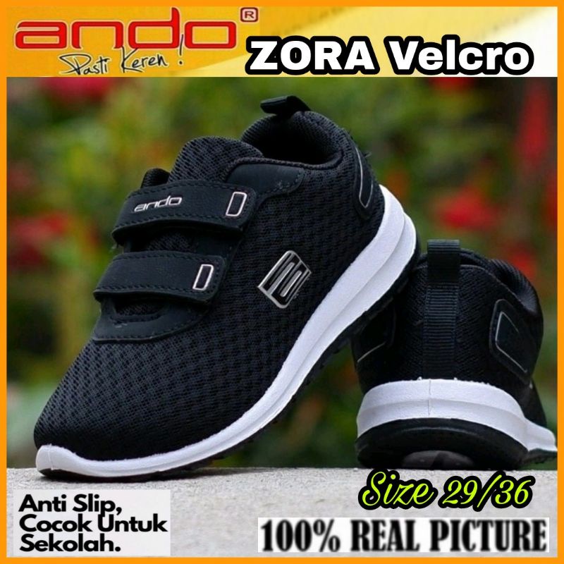 ANDO Sepatu Anak Sekolah TK SD Cewek Kecil Velcro Perekat Hitam Putih Pink Velcro Perekat 29-36 Berkualitas