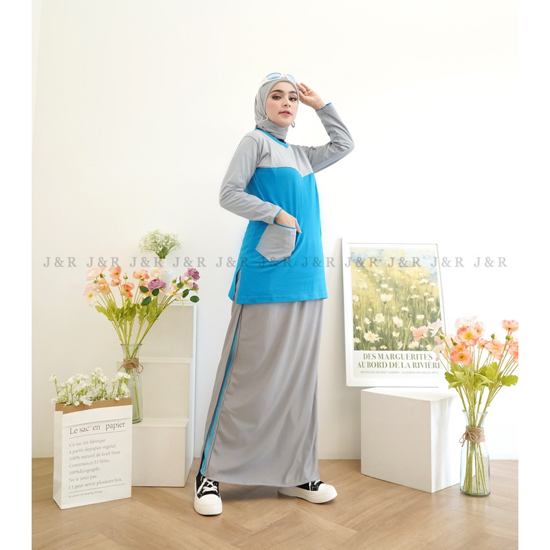 STELAN BAJU OLAHRAGA TUNIK DENGAN ROK CELANA MUSLIMAH MODEL BAJU BISA REQUEST BY CHAT