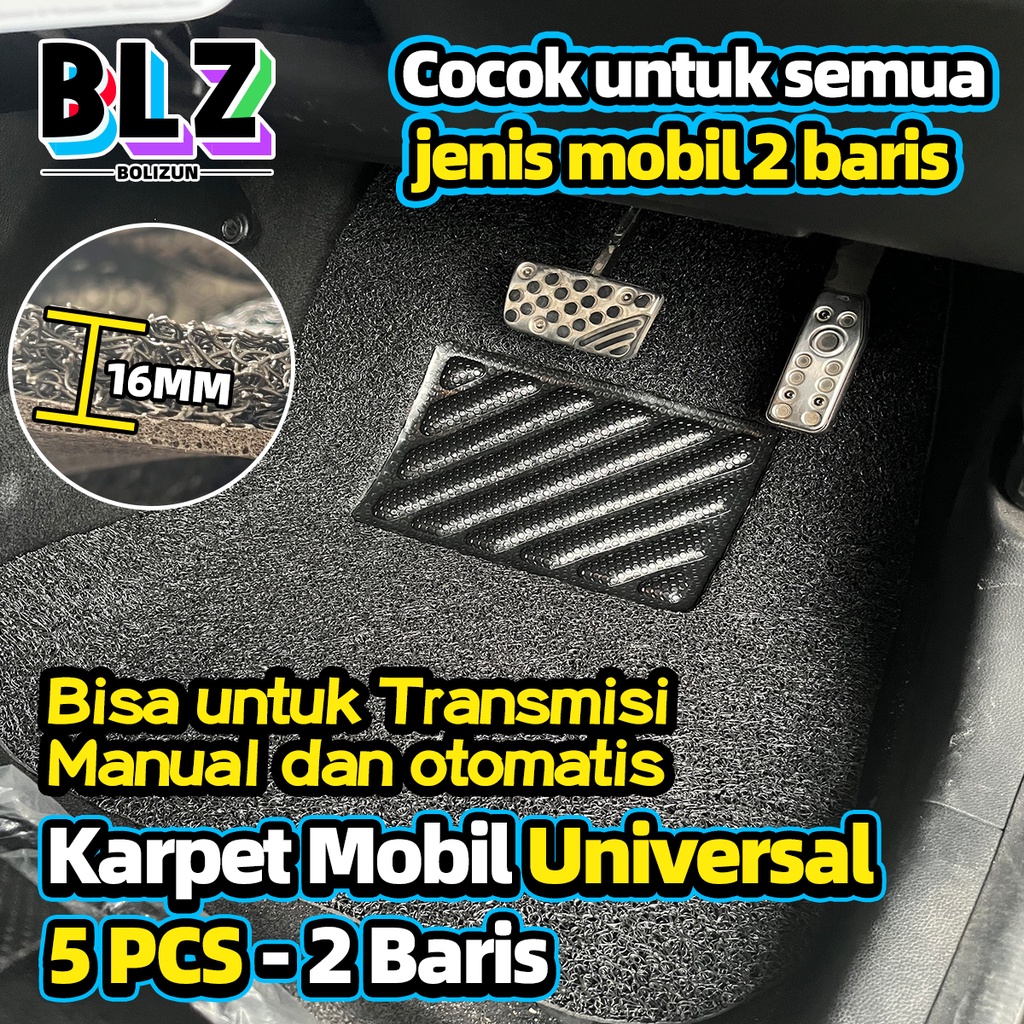 BOLIZUN Karpet Mobil 5 Pcs 2 Baris Universal - Mie Bihun PVC - Ketebalan 16MM Universal diaplikasikan ke semua mobil