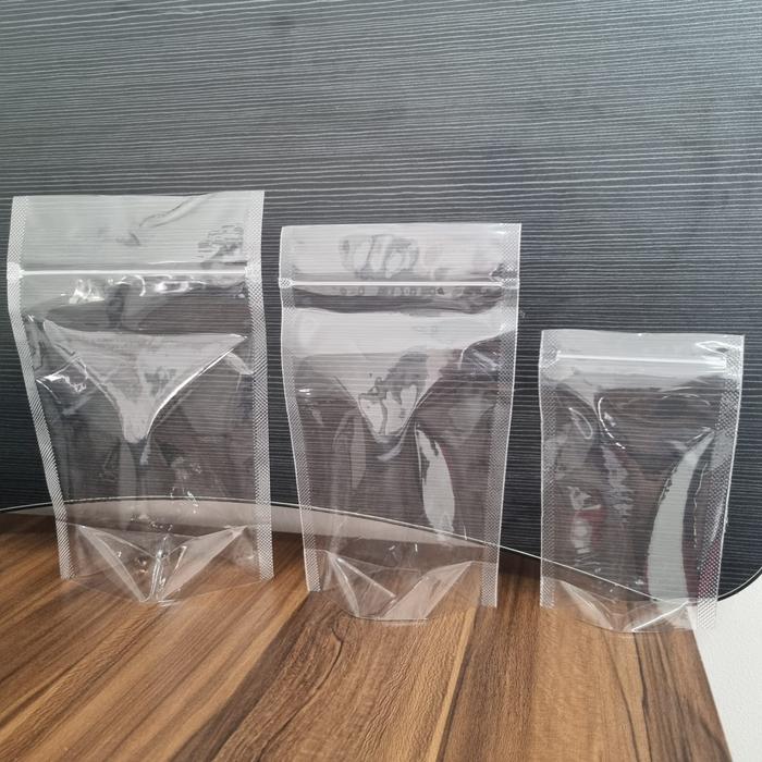 Standing Pouch Double Seal Lebar Premium Plastik Klip Berdiri Kemasan Snack Isi 50 Blutop Bening Zipper - 9X15
