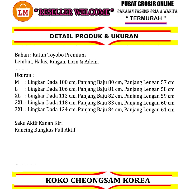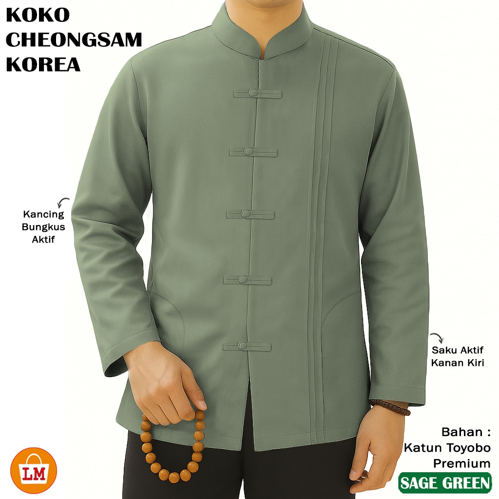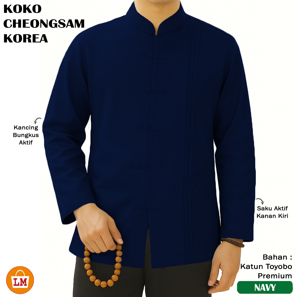 MA KOKO CHEONGSAM KOREA - Baju Koko Pria Muslim Lengan Panjang Bahan Kain Katun Toyobo Premium / 38469 Bahan Lembut Adem, Kancing dan Saku Aktif Koko Dewasa