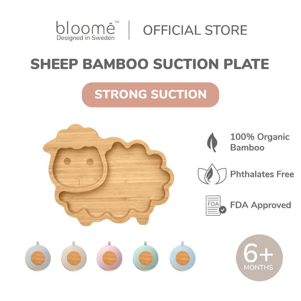BLOOME – Sheep Bamboo Suction Plate For Baby Toddler And Kids | Piring Makan Domba Bambu Bayi Premium