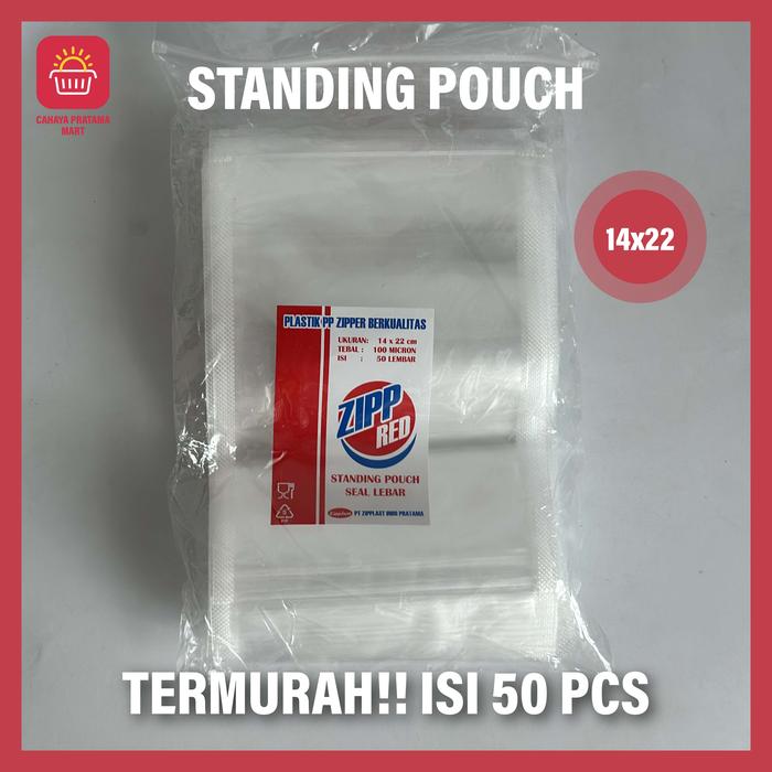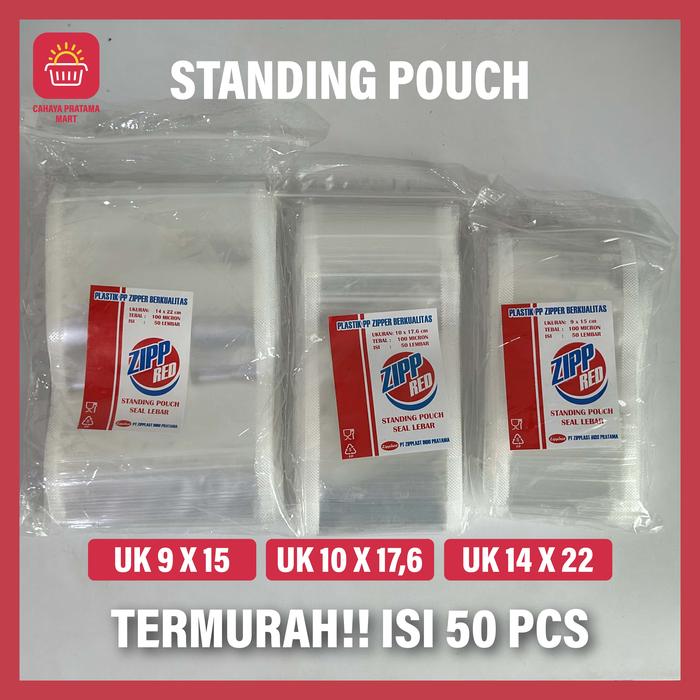 Plastik Standing Pouch Stp Seal Lebar Plastik Klip Double Seal Transparan Besar Lebar Isi 50 Pcs Uk 9X15 10X17,6 14X22 -