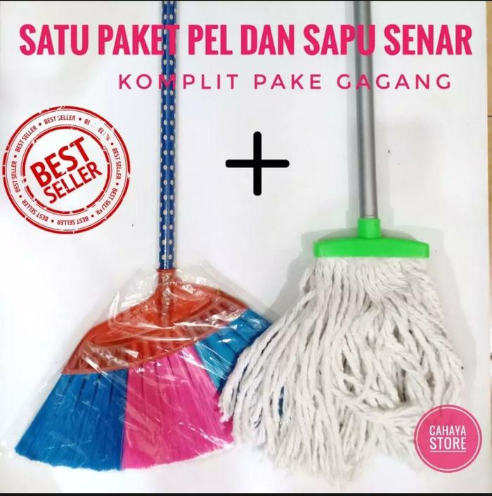 Paket Hemat 2 In 1 Sapu Senar Dan Pel Lantai Gagang Kayu Senar Plastik