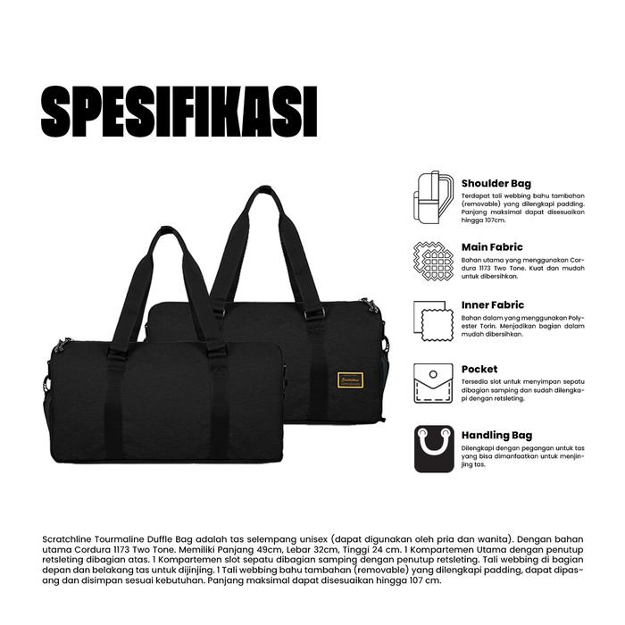 Scratchline Tourmaline Duffle Bag Black /Tas Travel Besar/Travel Bag Duffel/ Portable Gym Bag/ Tas Fitnes/ Tas Handcarry