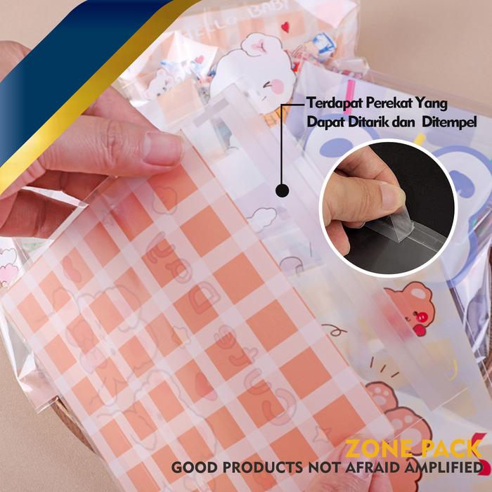 100 Pcs Plastik Cookies Motif|Plastik Packing Cookies| Plastik Opp 7X7 10X10 |Kemasan Roti Lucu - Kelinci 2 In 1, 7 Cm