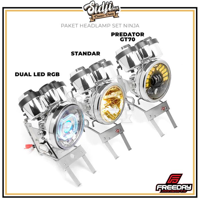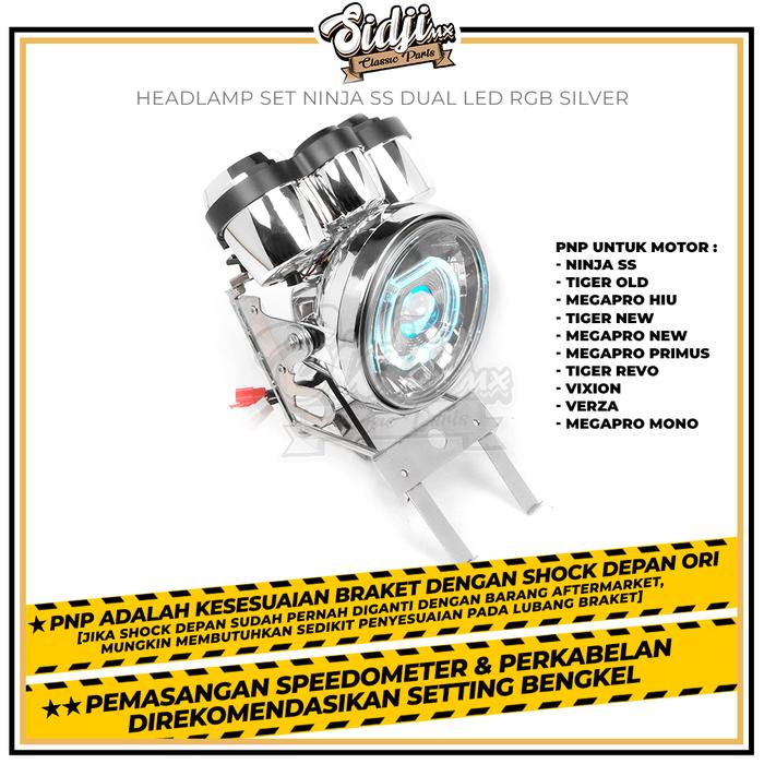 Headlamp Set Speedometer Plus Lampu Depan Plus Kupingan Tralis Ninja Ss Standar Bulat Dual Led Rgb Laser Led Tiger New T