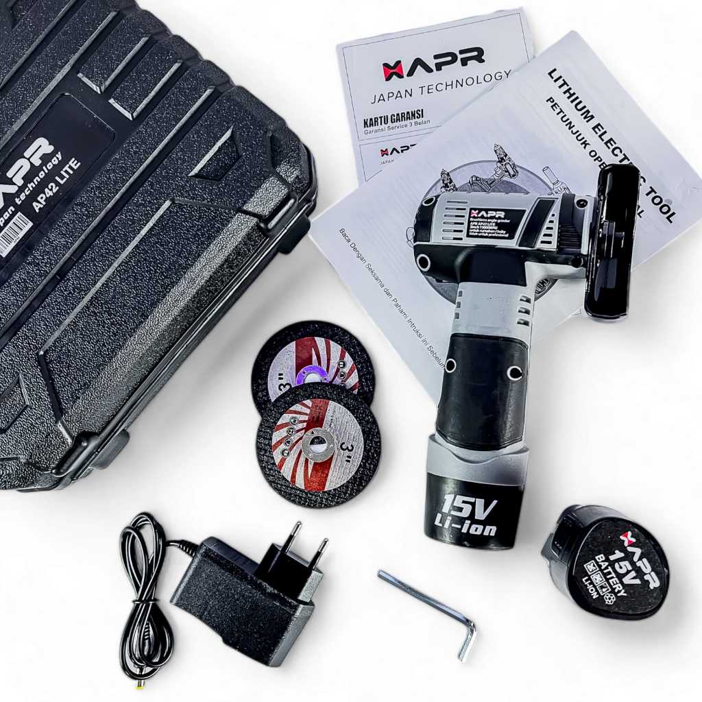 APR JAPAN Mesin Gerinda Gurinda Baterai Cordless Angle Grinder tong les Besi Tanpa Kabel AP42