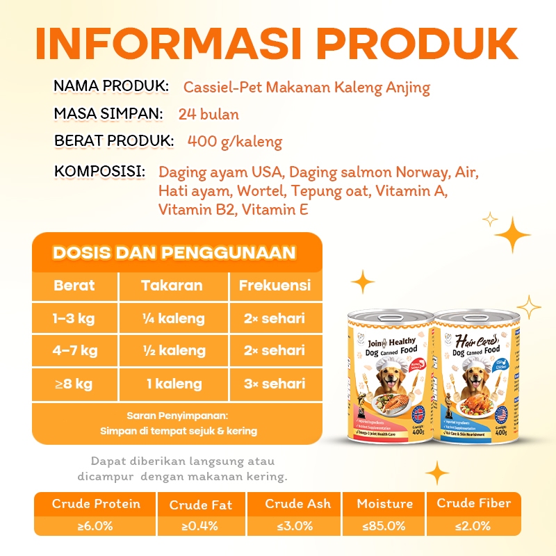 Cassiel Pet 400g Makanan Kaleng Anjing – Sachet Makanan Basah Anjing Dog Puppy Adult Wetfood