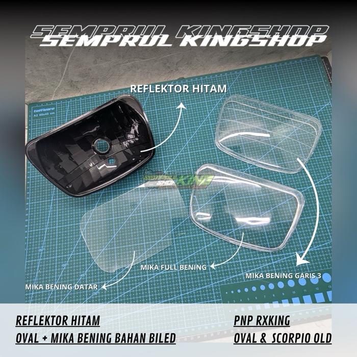 REFLEKTOR HITAM DAN MIKA BENING CEMBUNG BAHAN BILED RX KING OVAL SCORPIO OLD MOTORCYCLE - REF+MIKA C BILED