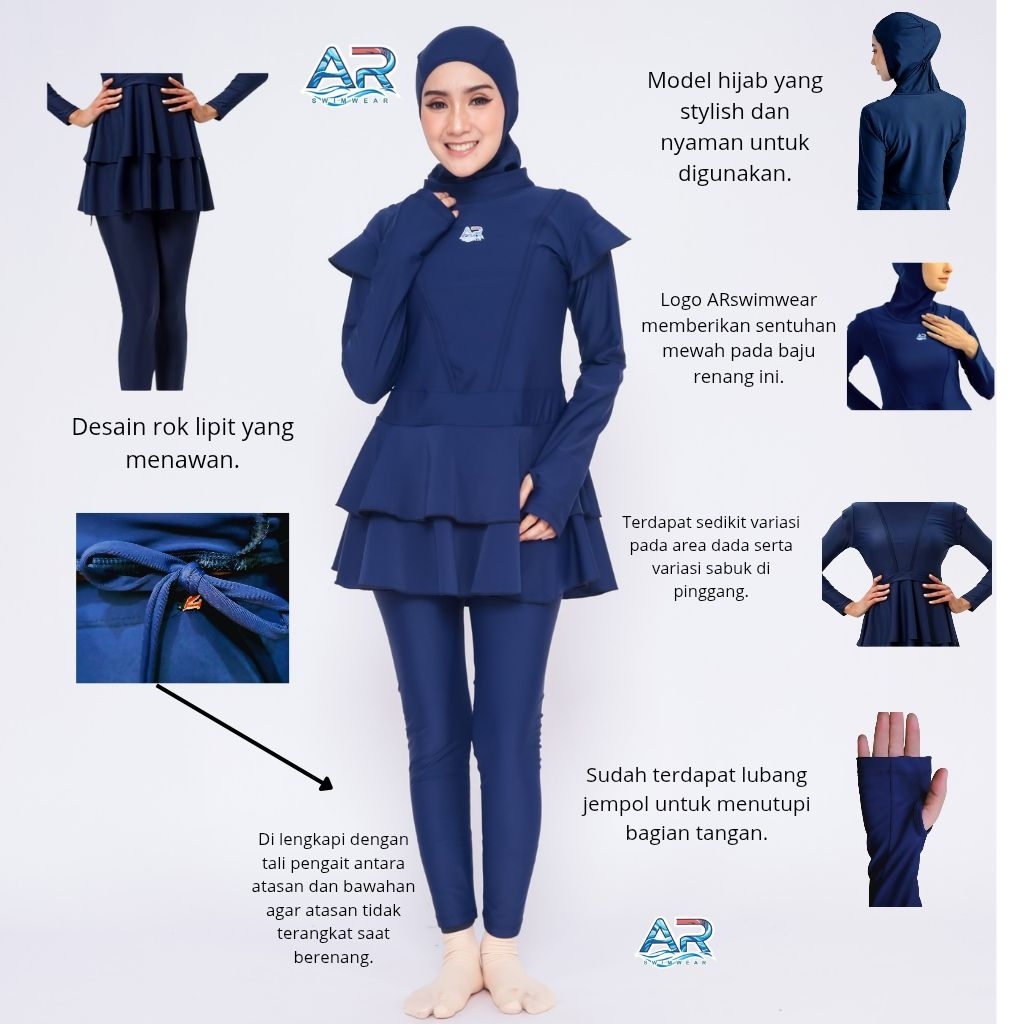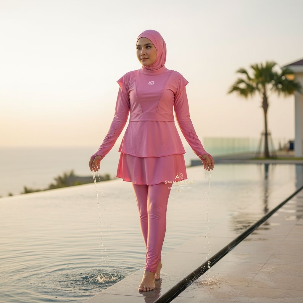 AR – Varellia Luxe Set Exclusive Modest Luxury Swimwear Baju Renang Wanita Muslimah Syar'i dilengkapi CUP bra Dewasa Spa